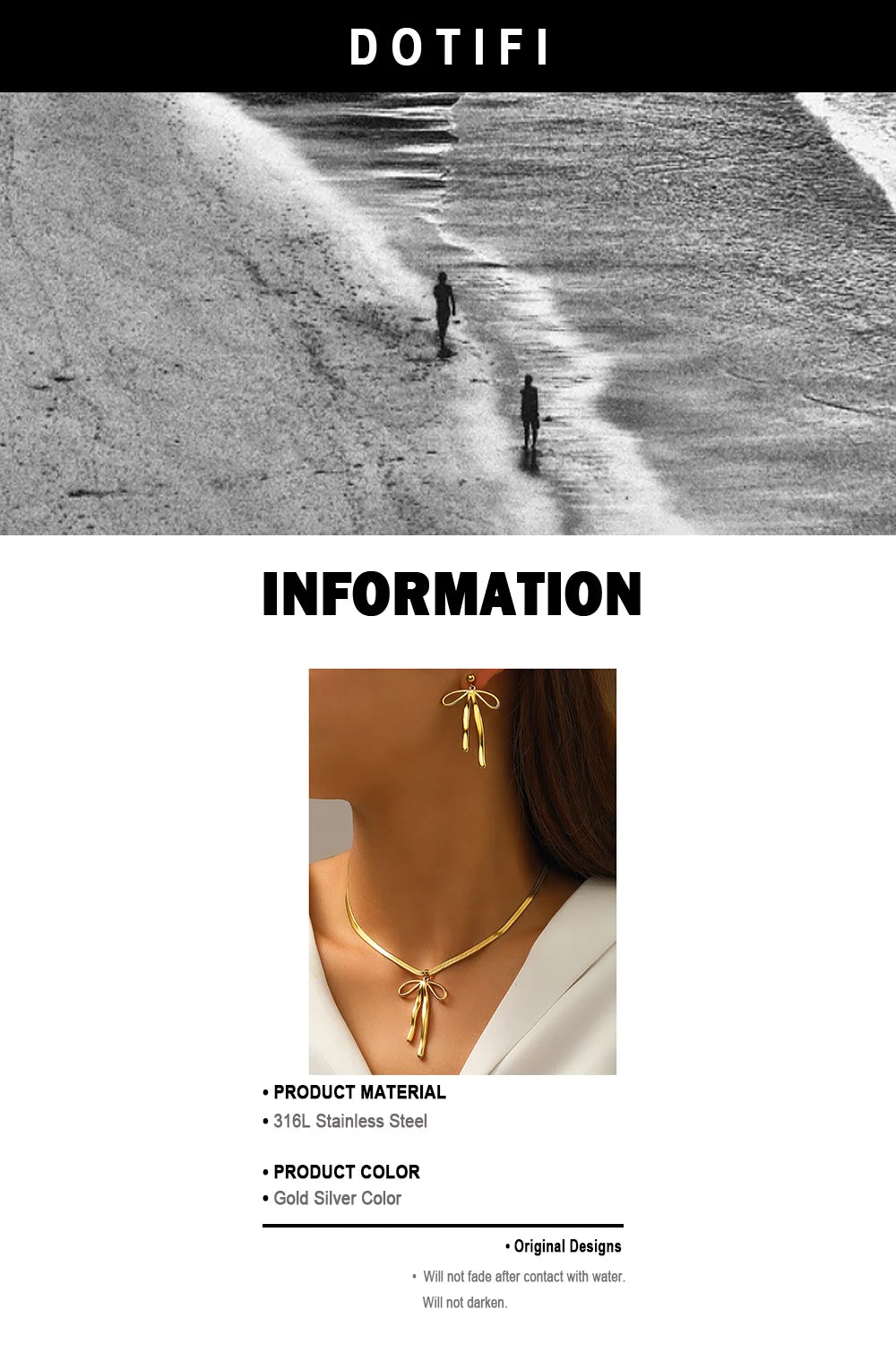 Ensemble Aomogo en acier inoxydable, luxueux et tendance, comprenant un pendentif nœud papillon, des boucles d'oreilles et un collier à chaîne en os de serpent. Bijou pour femme à porter au quotidien.