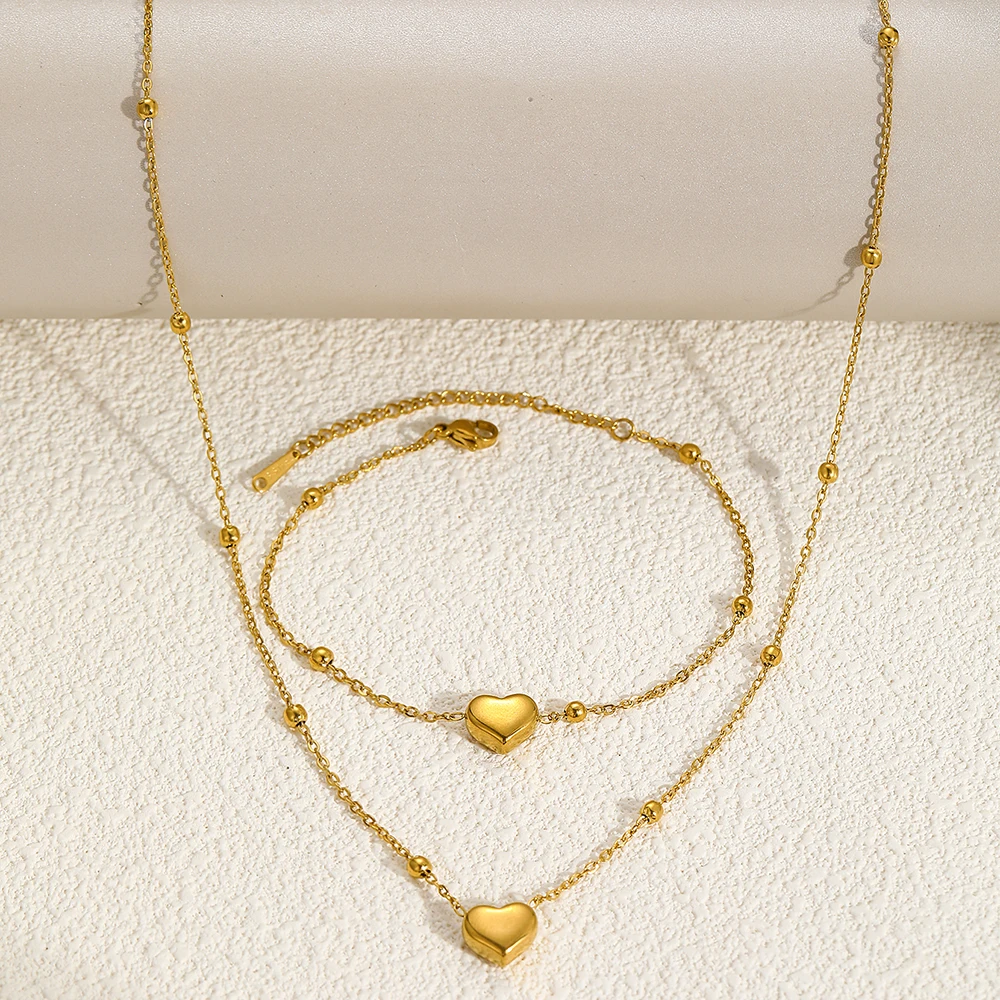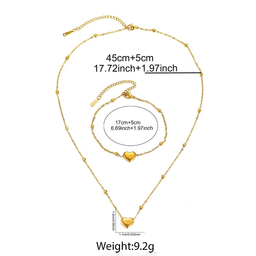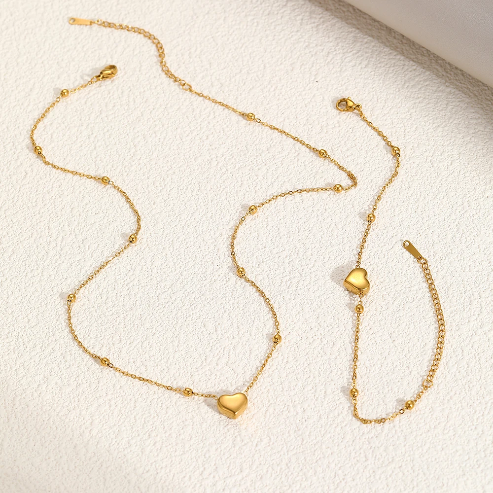 Ensemble de bijoux DOTIFI en acier inoxydable, collier et bracelet avec pendentif cœur stéréoscopique. Bijou simple et tendance, idéal pour les femmes. Cadeau parfait.