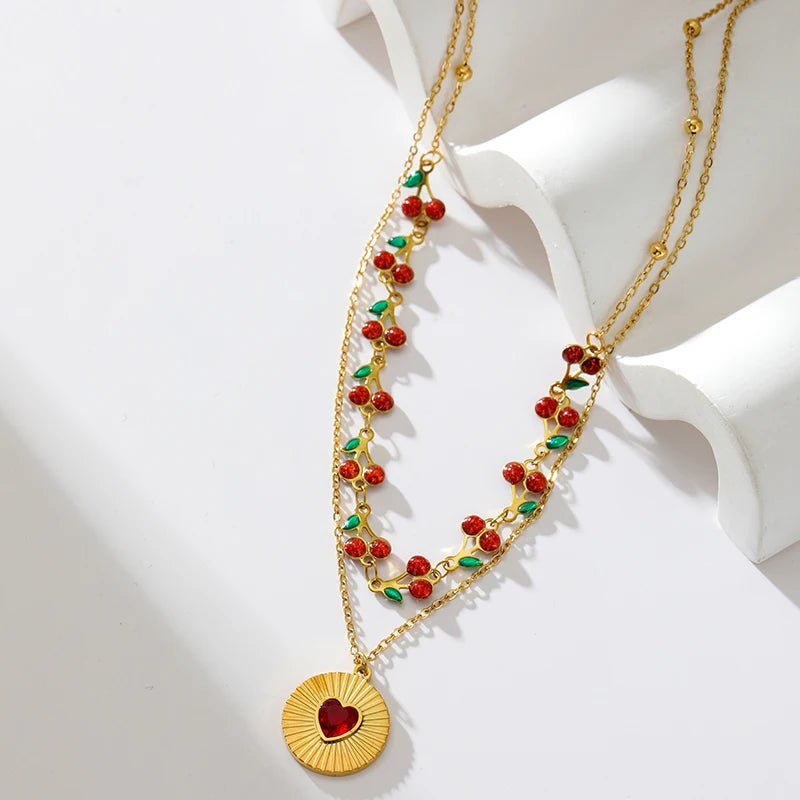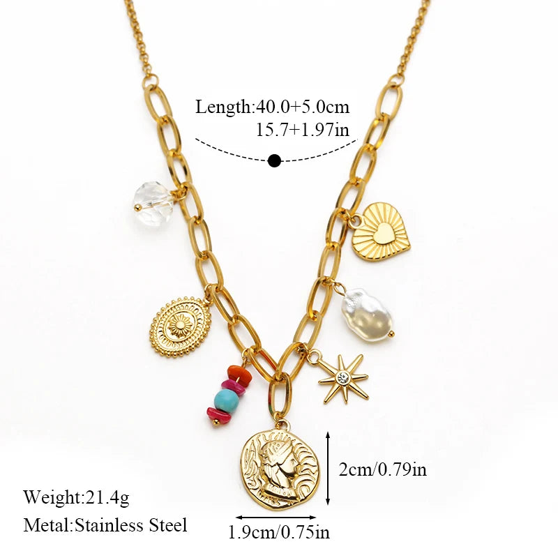 Collier pendentif soleil, cœur et fleur en acier inoxydable 316L EILIECK, plaqué or 18 carats, bijou fait main pour femme et fille