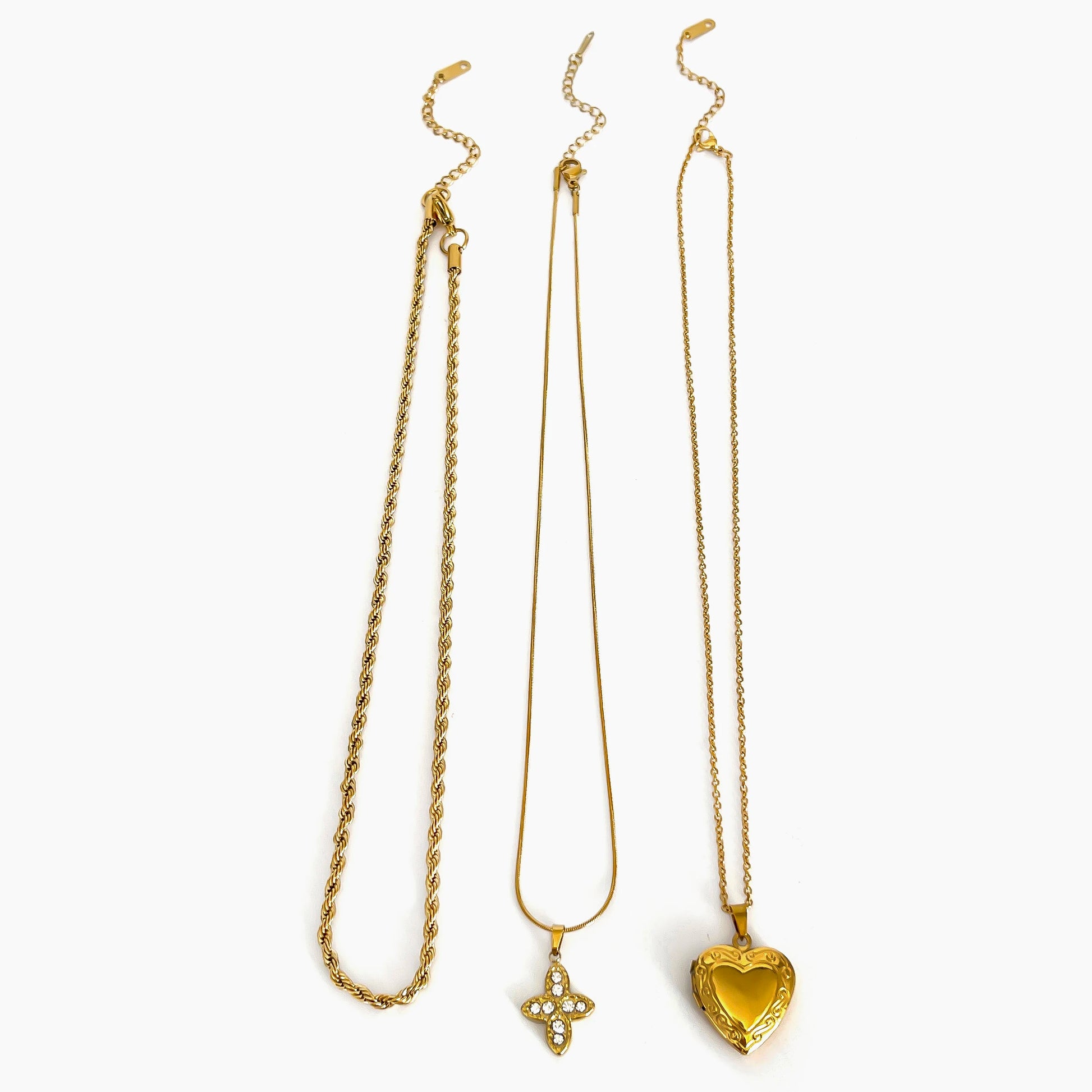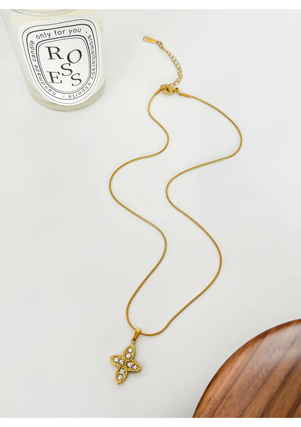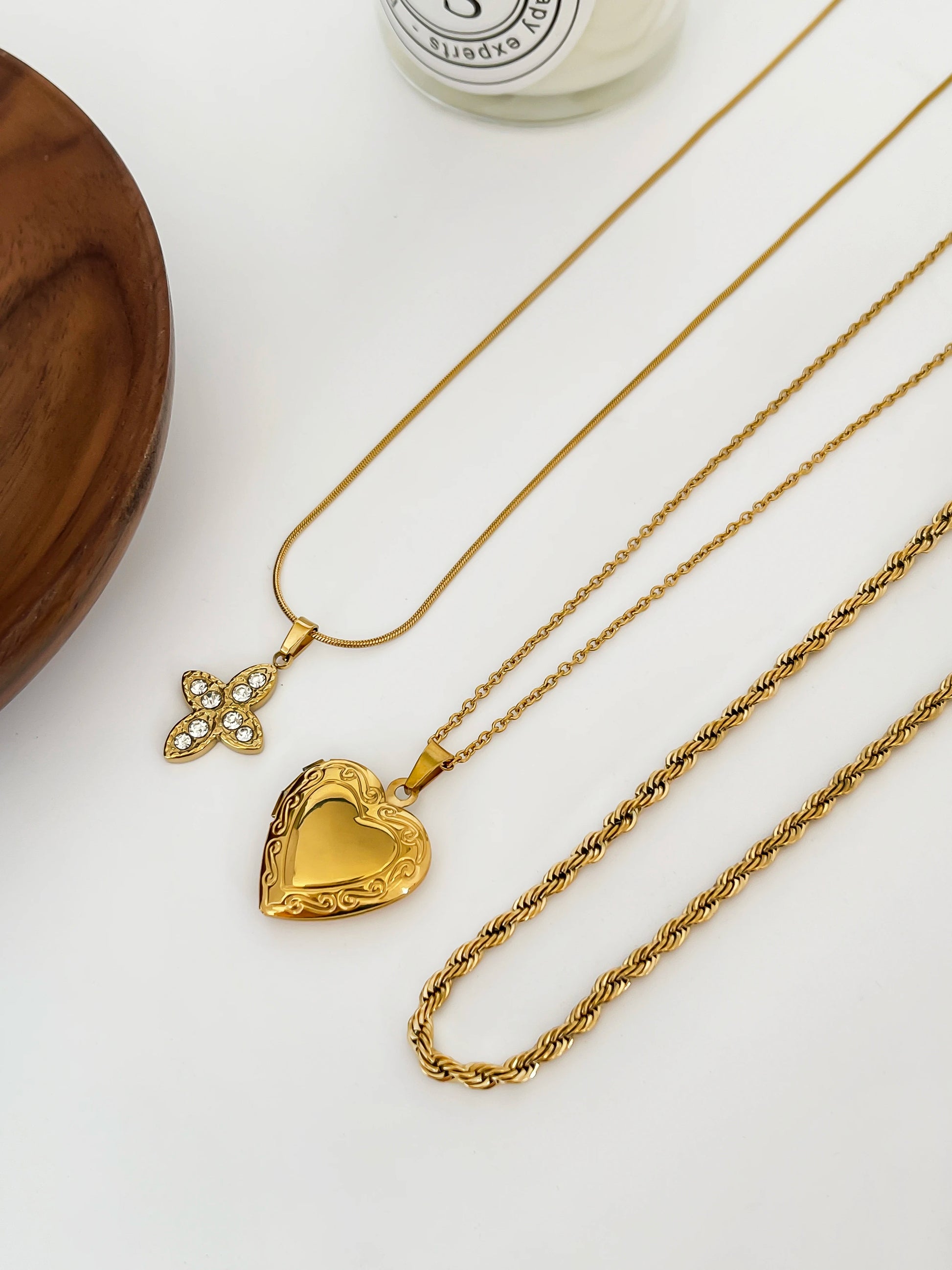Peri'sbox Collier pendentif cœur croix strass couleur or massif tendance, chaîne torsadée en acier inoxydable, bijou femme